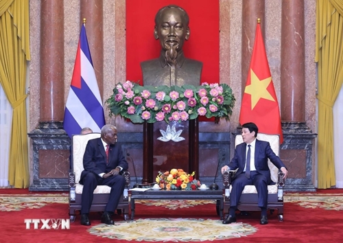លោក Luong Cuong ប្រធានរដ្ឋវៀតណាម និងលោក Esteban Lazo Hernandez ប្រធានរដ្ឋសភា និងជាប្រធានក្រុមប្រឹក្សារដ្ឋគុយបា |