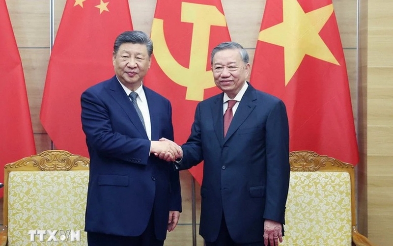 លោក To Lam អគ្គលេខាបក្សកុម្មុយនិស្តវៀតណាម និងលោក Xi Jinping អគ្គលេខាគណៈកម្មាធិការមជ្ឈិមបក្សកុម្មុយនិស្តចិន ប្រធានរដ្ឋនៃសាធារណរដ្ឋប្រជាមានិតចិន (រូបថត៖ vnanet.vn) |