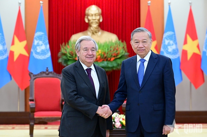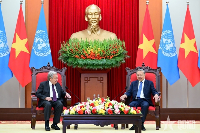 លោក António Guterres អគ្គលេខាធិការអង្គការសហប្រជាជាតិបានបញ្ជាក់ថា អង្គការសហប្រជាជាតិនឹងបន្តរួមដំណើរជាមួយវៀតណាមក្នុងដំណាក់កាលអភិវឌ្ឍន៍ថ្មី ជាពិសេសគាំទ្រដល់ការអនុវត្តកិច្ចសន្យាអាកាសធាតុ SDGs និងកំណែទម្រង់ហិរញ្ញវត្ថុសកល។ លោក António Guterres ជឿជាក់ថា វៀតណាមនឹងលើកកម្ពស់តួនាទី ឋានៈ និងកិត្យានុភាពនោះ ដើម្បីរួមចំណែកដល់ការកសាងរចនាសម្ព័ន្ធទំនាក់ទំនងអន្តរជាតិថ្មី។ ជាពិសេស លោក António Guterres បានអំពាវនាវឱ្យវៀតណាមគាំទ្រយ៉ាងសកម្មចំពោះគំនិតផ្តួចផ្តើម និងអាទិភាពរបស់អង្គការសហប្រជាជាតិ ដើម្បីជំរុញកម្លាំងចលករសម្រាប់ការអនុវត្ត SDGs និងកែទម្រង់រចនាសម្ព័ន្ធហិរញ្ញវត្ថុអន្តរជាតិ។ លោក António Guterres សង្ឃឹមថា វៀតណាមនឹងសន្យាកាន់តែខ្លាំងឡើងលើអាកាសធាតុ ក៏ដូចជាចូលរួមក្នុងកិច្ចខិតខំប្រឹងប្រែងរបស់អង្គការសហប្រជាជាតិលើការទូតបង្ការ ការសម្របសម្រួល និងការបង្ការជម្លោះ។