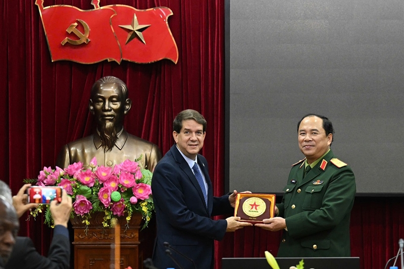 កប.អនឡាញ - នាព្រឹកថ្ងៃទី ៤ ខែធ្នូ នៅទីក្រុងហាណូយ គណៈប្រតិភូនៃទីភ្នាក់ងារសារព័ត៌មានអាមេរិកឡាទីន Prensa Latina របស់ប្រទេសគុយបា ដឹកនាំដោយលោក Jorge Legañoa Alonso ប្រធានទីភ្នាក់ងារសារព័ត៌មាន Prensa Latina បានមកបំពេញទស្សនកិច្ចការងារនៅកាសែតកងទ័ពប្រជាជនវៀតណាម។ ចូលរួមគណៈប្រតិភូមានលោក Rogelio Polanco Fuentes ឯកអគ្គរដ្ឋទូតវិសាមញ្ញ និងពេញសមត្ថភាពរបស់ប្រទេសគុយបាប្រចាំនៅវៀតណាម។