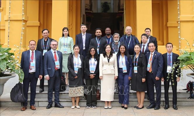 ថ្នាក់ដឹកនាំនៃក្រសួងការបរទេសទទួលជួបគណៈប្រតិភូអ្នកសារព័ត៌មានបរទេសដែលចូលរួមយកព័ត៌មានអំពីមហាសន្និបាតលើកទី ១៤ របស់បក្សកុម្មុយនិស្តវៀតណាម (រូបថត៖ vnanet.vn) |