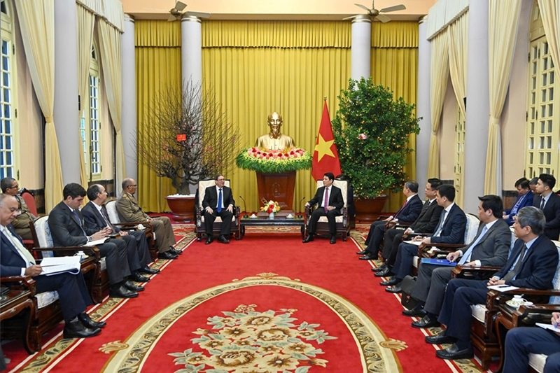 ក្នុងបរិយាកាសដែលពោរពេញដោយមនោសញ្ចេតនា លោក Luong Cuong ប្រធានរដ្ឋវៀតណាមបានស្វាគមន៍យ៉ាងកក់ក្តៅចំពោះបេសកជនពិសេសដែលដឹកនាំគណៈប្រតិភូជាន់ខ្ពស់គុយបាមកបំពេញទស្សនកិច្ចនៅប្រទេសវៀតណាមបន្ទាប់ពីមហាសន្និបាតលើកទី ១៤ នៃបក្សកុម្មុយនិស្តវៀតណាមបញ្ចប់ដោយជោគជ័យ ដែលជា បង្ហាញយ៉ាងរស់រវើកនូវទំនាក់ទំនងស្អិតរមួត ការជឿទុកចិត្តរវាងបក្សទាំងពីរ រដ្ឋទាំងពីរ និងប្រជាជននៃប្រទេសទាំងពីរ។