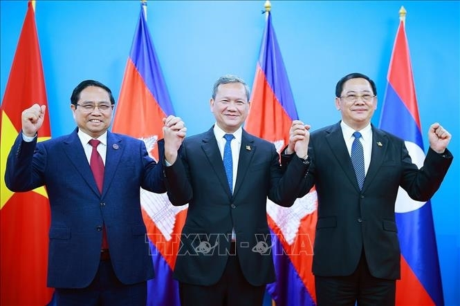 លោក Pham Minh Chinh នាយករដ្ឋមន្ត្រីវៀតណាម ជួបជាមួយសម្ដេចធិបតី ហ៊ុន ម៉ាណែត នាយករដ្ឋមន្ត្រីកម្ពុជា និងលោក Sonexay Siphandone នាយករដ្ឋមន្ត្រីឡាវ (រូបថត៖ vnanet.vn) |