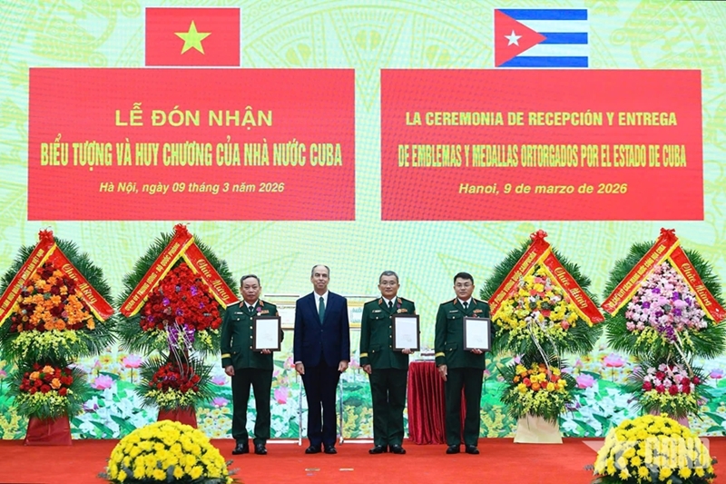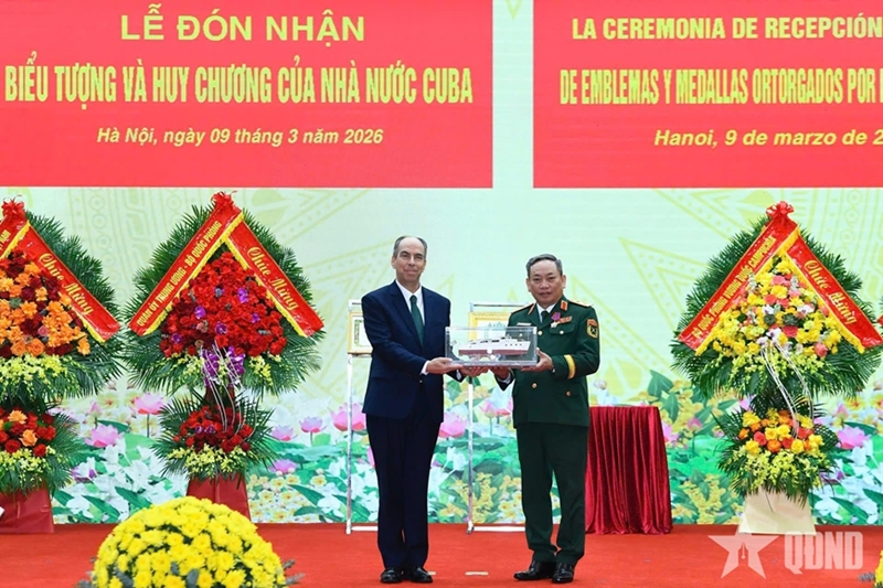 កប.អនឡាញ - នៅព្រឹកថ្ងៃទី ៩ ខែមីនា អគ្គបញ្ជាការដ្ឋានលេខ២ បានរៀបចំពិធីទទួលគ្រឿងឥស្សរិយយស និងនិមិត្តសញ្ញាពីរដ្ឋ ក្រសួងការពារជាតិឡាវ រដ្ឋកម្ពុជា និងគុយបា។ លោកនាយឧត្តមសេនីយ៍ Phan Van Giang សមាជិកការិយាល័យនយោបាយ អនុលេខានៃគណៈកម្មាធិការបក្សយោធាមជ្ឈិម រដ្ឋមន្ត្រីក្រសួងការពារប្រទេស បានអញ្ជើញចូលរួមជាអធិបតីក្នុងពិធី។