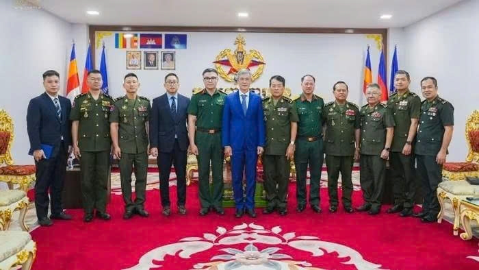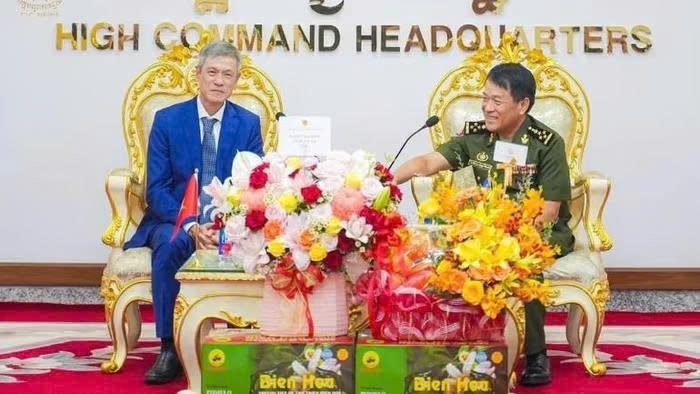 កប.អនឡាញ - ក្នុងឱកាសបុណ្យចូលឆ្នាំថ្មីប្រពៃណីជាតិខ្មែរ ឆ្នាំ២០២៦ លោក Nguyen Minh Vu ឯកអគ្គរដ្ឋទូតវៀតណាមប្រចាំនៅកម្ពុជា បានអញ្ជើញទៅជូនពរឆ្នាំថ្មីលោកនាយឧត្តមសេនីយ៍ វង្ស ពិសេន អគ្គមេបញ្ជាការនៃកងយោធពលខេមរភូមិន្ទ និងលោកនាយឧត្តមសេនីយ៍ ម៉ៅ សុផាន់ អគ្គមេបញ្ជាការរង នៃកងយោធពលខេមរភូមិន្ទ មេបញ្ជាការកងទ័ពជើងគោក។