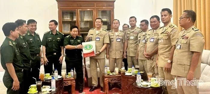 កប.អនឡាញ - នៅថ្ងៃទី ៣ ខែមេសា គណៈប្រតិភូនៃគណៈបញ្ជាការកងទ័ពការពារព្រំដែនខេត្តដុងថាប ដឹកនាំដោយលោកវរសេនីយ៍ឯក Nguyen Van Tuan មេបញ្ជាការរង បានអញ្ជើញទៅសួរសុខទុក្ខ និងជូនពរឆ្នាំថ្មីនៅតំបន់ប្រតិបត្តិការសឹករងព្រៃវែង និងស្នងការដ្ឋាននគបាលខេត្តព្រៃវែង