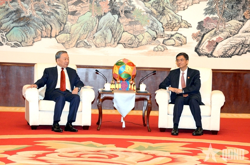កប.អនឡាញ - នៅយប់ថ្ងៃទី១៦ ខែមេសា នៅទីក្រុងណាននីង តំបន់ស្វយ័តជនជាតិជាំងក្វាងស៊ី ប្រទេសចិន ក្នុងក្របខ័ណ្ឌនៃដំណើរទស្សនកិច្ចផ្លូវរដ្ឋទៅកាន់ប្រទេសចិន លោក To Lam អគ្គលេខាបក្ស និងជាប្រធានរដ្ឋវៀតណាម បានទទួលជួបលោក Chen Jiang សមាជិកគណៈកម្មាធិការមជ្ឈិមបក្សកុម្មុយនិស្តចិន លេខាគណៈកម្មាធិការបក្សតំបន់ស្វយ័តជនជាតិជាំងក្វាងស៊ី។