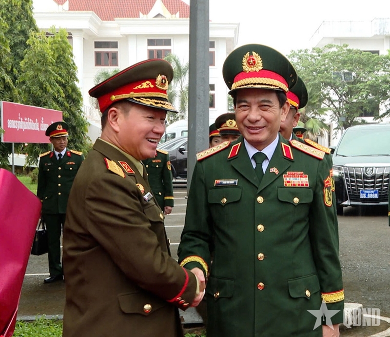 លោកនាយឧត្តមសេនីយ៍ Phan Van Giang ជួបពិភាក្សាការងារជាមួយរដ្ឋមន្ត្រីក្រសួងការពារជាតិឡាវ