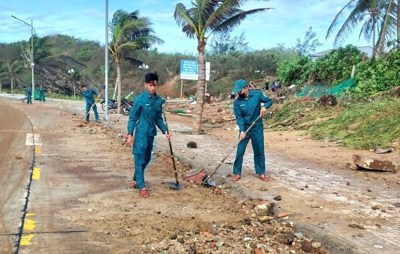 កងជីវពលនៃឃុំ An Phu ខេត្ត Quang Ngai សម្អាតផ្លូវក្រោយព្យុះ
