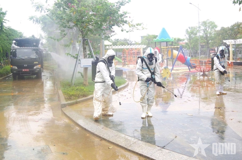 កងពលតូចជំនាញគីមីសាស្ដ្រលេខ៨៨ (កងទ័ពគីមីសាស្រ្ត) បាញ់ថ្នាំសម្លាប់មេរោគដើម្បីការពារជំងឺរាតត្បាតបន្ទាប់ពីទឹកជំនន់នៅក្នុងសង្កាត់ Dien Ban (ទីក្រុង Da Nang)