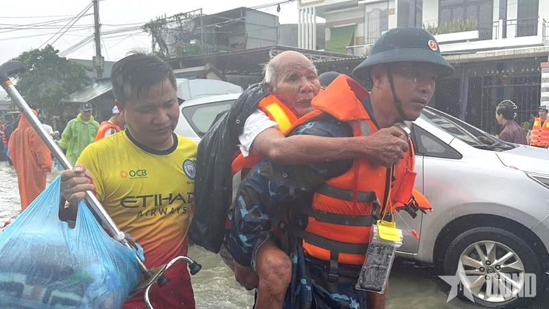 កងទ័ពនៃកងពលធំការពារដែនអាកាសលេខ៣៧៦ (ប្រភេទទ័ពការពារដែនអាកាស - ទ័ពជើងអាកាស) ជម្លៀសមនុស្សចាស់នៅក្នុងផ្លូវ Quang Lang B (សង្កាត់ Dien Ban Dong ទីក្រុង Da Nang) ទៅកាន់ទីតាំងសុវត្ថិភាព