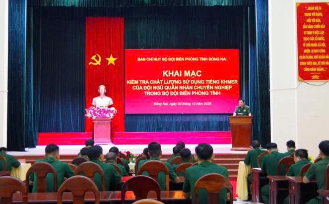 កប.អនឡាញ - នៅថ្ងៃទី ៣ និងទី ៤ ខែធ្នូ គណៈបញ្ជាការដ្ឋានកងទ័ពការពារព្រំដែនខេត្ត Dong Nai (វៀតណាម) បានរៀបចំកម្មវិធីពិនិត្យសមត្ថភាពប្រើប្រាស់ភាសាខ្មែររបស់យោធិនដែលកំពុងធ្វើការនៅក្នុងអង្គភាព។