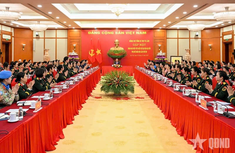 កប.អនឡាញ - នៅរសៀលថ្ងៃទី១៦ ខែធ្នូ នៅទីស្នាក់ការគណៈកម្មាធិការមជ្ឈិមបក្សកុម្មុយនិស្តវៀតណាម លោក To Lam អគ្គលេខាបក្ស និងជាលេខាគណៈកម្មាធិការបក្សយោធាមជ្ឈិម បានជួបសំណេះសំណាលជាមួយគណៈប្រតិភូឆ្នើមចំនួន ៨០ រូប ដែលតំណាងឱ្យគណៈប្រតិភូចំនួន ៣៩៨ រូប ដែលត្រូវបានចូលរួមក្នុងមហាសន្និបាតនារីកងទ័ពលើកទី៨។