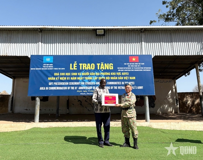 កប.អនឡាញ - នៅថ្ងៃទី ១៥ ខែធ្នូ នៅបរិវេណព្រះវិហារ Catholic និងតំបន់លំនៅដ្ឋានជុំវិញស្ថានបេសកកម្មសន្តិសុខបណ្តោះអាសន្នរបស់អង្គការសហប្រជាជាតិនៅតំបន់ Abyei (UNISFA) ក្រុមវិស្វកម្មលេខ ៤ វៀតណាមបានរៀបចំកម្មវិធីប្រគល់អំណោយដល់ប្រជាពលរដ្ឋ និងកុមារ។