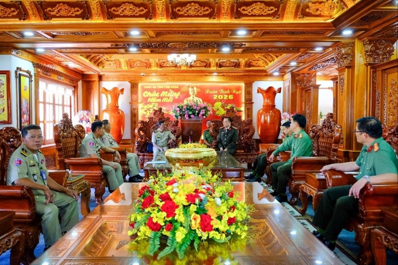 កប.អនឡាញ - នារសៀលថ្ងៃទី ២ ខែកុម្ភៈ ក្រុមបេសកកម្មនៃស្នងការដ្ឋាននគរបាលខេត្តមណ្ឌលគីរី អញ្ជើញទៅសួរសុខទុក្ខ និងជូនពរឆ្នាំថ្មីដល់កម្មាភិបាល និងយុទ្ធជនរបស់នគរបាលខេត្ត Lam Dong។