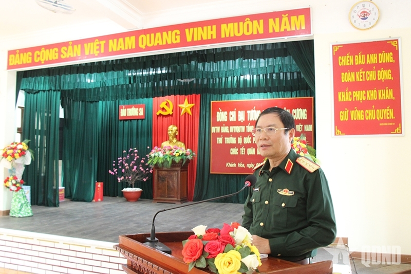 ក្រុមបេសកកម្មគណៈកម្មាធិការបក្សយោធាមជ្ឈិម ក្រសួងការពារប្រទេសវៀតណាមទៅជូនពរឆ្នាំថ្មីដល់តំបន់សេដ្ឋកិច្ចពិសេស Truong Sa និងផ្ទះរន្ទា DK1