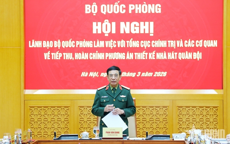 លោក Phan Van Giang រដ្ឋមន្ត្រី បានសង្កេត់ធ្ងន់ថា ការវិនិយោគសាងសង់រោងមហោស្រពកងទ័ពគឺជាកិច្ចការសំខាន់មួយដែលមានសារៈសំខាន់យ៉ាងជ្រាលជ្រៅដែលរួមចំណែកលើកកម្ពស់ជីវិតវប្បធម៌ និងស្មារតីរបស់កងទ័ព និងលើកកម្ពស់ប្រសិទ្ធភាពនៃសកម្មភាពសិល្បៈយោធា។