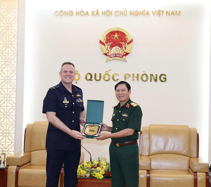 កប.អនឡាញ - នារសៀលថ្ងៃទី ១៣ ខែតុលា នៅទីស្នាក់ការក្រសួងការពារប្រទេសវៀតណាម លោកនាយឧត្តមសេនីយ៍ Nguyen Tan Cuong សមាជិកគណៈកម្មាធិការមជ្ឈិមបក្ស សមាជិកអចិន្ត្រៃយ៍នៃគណៈកម្មាធិការបក្សយោធាមជ្ឈិម ប្រធានអគ្គសេនាធិការនៃកងទ័ពប្រជាជនវៀតណាម និងជាអនុរដ្ឋមន្ត្រីក្រសួងការពារប្រទេស បានទទួលជួបលោកឧត្តមសេនីយ៍ទោ Stephen Chappell មេបញ្ជាការកងទ័ពជើងអាកាសអូស្ត្រាលី។