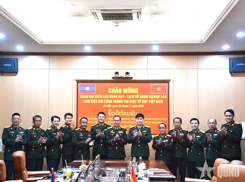 កប.អនឡាញ - នារសៀលថ្ងៃទី ២៥ ខែវិច្ឆិកា នៅទីក្រុងហាណូយ គណៈប្រតិភូនៃនាយកដ្ឋានវិទ្យាសាស្ត្រ ប្រវត្តិសាស្ត្រយោធា ក្រសួងការពារជាតិឡាវ បានជួបពិភាក្សាការងារជាមួយស្ថាប័នព័ត៌មានអេឡិចត្រូនិករបស់ក្រសួងការពារប្រទេសវៀតណាម។