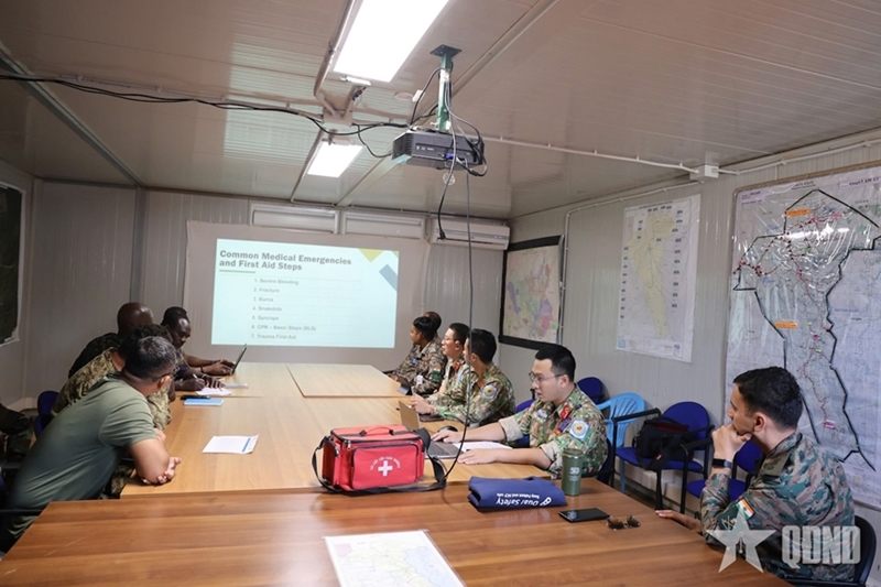 កប.អនឡាញ - ក្នុងនាមជាមណ្ឌលសុខភាពជួរមុខនៅ Bentiu ប្រទេសស៊ូដង់ខាងត្បូង កងពេទ្យកម្រិត ២ លេខ ៧ របស់វៀតណាម បានរៀបចំវគ្គហ្វឹកហាត់វិជ្ជាជីវៈ សម្រាប់កងពេទ្យកម្រិត ១ និងទីភ្នាក់ងារនៃបញ្ជាការដ្ឋានតំបន់ Unity អំពីជំនាញសង្គ្រោះបឋមចាំបាច់ក្នុងស្ថានភាពបណ្ដោះអាសន្ន។