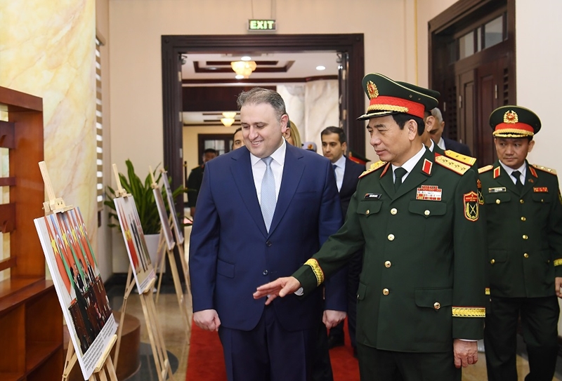 លោកនាយឧត្តមសេនីយ៍ Phan Van Giang និងលោក Vugar Mustafayev រដ្ឋមន្ត្រី ទស្សនាការតាំងពិព័រណ៍រូបថតស្តីពីទំនាក់ទំនងសហប្រតិបត្តិការរវាងប្រទេសទាំងពីរ |