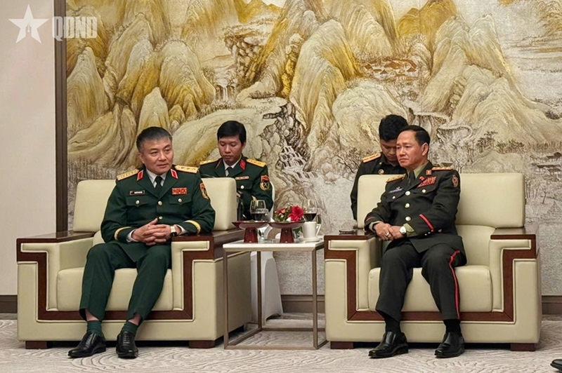 លោកឧត្តមសេនីយ៍ឯក Nguyen Van Hien ស្វាគមន៍ និងអបអរសាទររដ្ឋមន្ត្រីក្រសួងការពារជាតិឡាវ