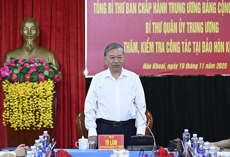 កប.អនឡាញ - នាព្រឹកថ្ងៃទី ១៩ ខែវិច្ឆិកា លោក To Lam អគ្គលេខាបក្សកុម្មុយនិស្តវៀតណាម បានអញ្ជើញចុះសាកសួរសុខទុក្ខ និងជួបធ្វើការជាមួយអង្គភាពកងទ័ព និងបក្ខភាគ អាជ្ញាធរខេត្ត Ca Mau នៅកោះ Hon Khoai (ក្នុងឃុំ Dat Mui ខេត្ត Ca Mau)។