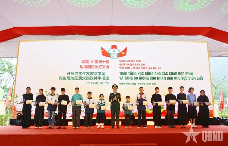 កប.អនឡាញ - នារសៀលថ្ងៃទី ១៦ ខែមីនា នៅអគារវប្បធម៌មិត្តភាពវៀតណាម-ចិន (ឃុំ Hoanh Mo ខេត្ត Quang Ninh វៀតណាម) បញ្ជាការដ្ឋានកងទ័ពការពារព្រំដែនវៀតណាម បានសហការជាមួយអាជ្ញាធរមូលដ្ឋានរៀបចំកម្មវិធីផ្តល់អាហារូបករណ៍ដល់សិស្ស និងគោពូជដល់គ្រួសារដែលជួបការលំបាកនៅតំបន់ព្រំដែនខេត្ត Quang Ninh។ លោកឧត្តមសេនីយ៍ត្រី Vu Quoc An អនុប្រធាននយោបាយនៃបញ្ជាការដ្ឋានកងទ័ពការពារព្រំដែន បានចូលរួម និងផ្តល់អាហារូបករណ៍ដល់សិស្ស និងគោពូជដល់ប្រជាជន។