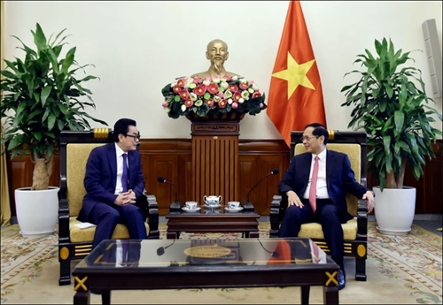 នៅក្នុងជំនួបនេះ លោកឧបនាយករដ្ឋមន្ត្រី និងជារដ្ឋមន្ត្រី Bui Thanh Son បានស្វាគមន៍គណៈប្រតិភូក្រសួងការបរទេស និងសហប្រតិបត្តិការអន្តរជាតិកម្ពុជា អញ្ជើញមកបំពេញទស្សនកិច្ចនៅវៀតណាម និងចូលរួមកិច្ចប្រជុំពិគ្រោះយោបល់នយោបាយរវាងក្រសួងការបរទេសទាំងពីរ។ ហើយរីករាយដែលឃើញថាទំនាក់ទំនងរវាងប្រទេសទាំងពីរមានការអភិវឌ្ឍយ៉ាងល្អលើគ្រប់វិស័យក្នុងរយៈពេលចុងក្រោយនេះ។ លោកឧបនាយករដ្ឋមន្ត្រី បានសង្កត់ធ្ងន់ថា ការផ្លាស់ប្តូរគណៈប្រតិភូជាទៀងទាត់ និងទំនាក់ទំនងកម្រិតខ្ពស់របស់ប្រទេសទាំងពីរបានរួមចំណែកយ៉ាងសកម្មក្នុងការអភិវឌ្ឍន៍ទំនាក់ទំនងនៃប្រទេសទាំងពីរឱ្យកាន់តែជិតស្និទ្ធថែមទៀត។ យន្តការសហប្រតិបត្តិការដែលបានអនុវត្តជាប្រចាំ គឺជាឱកាសមួយសម្រាប់ភាគីទាំងពីរពិនិត្យមើលឡើងវិញនូវការប្តេជ្ញាចិត្ត និងកិច្ចព្រមព្រៀងរបស់ថ្នាក់ដឹកនាំជាន់ខ្ពស់ របស់ក្រសួង និងស្ថាប័ននៃប្រទេសទាំងពីរ ព្រមទាំងសម្របសម្រួលដើម្បីដោះស្រាយ និងស្វែងរកមធ្យោបាយថ្មីៗ ដើម្បីជំរុញកិច្ចសហប្រតិបត្តិការសំខាន់ៗ ដើម្បីផលប្រយោជន៍រួម។