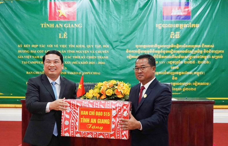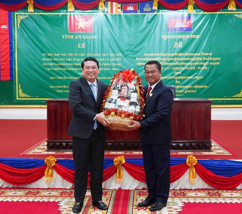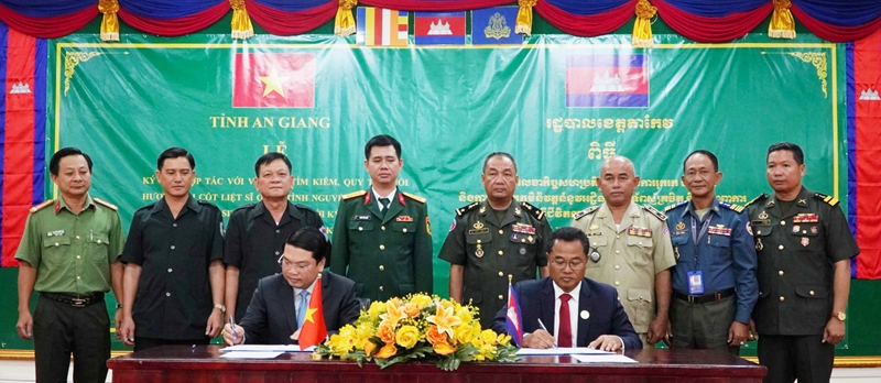 An Giang ចុះហត្ថលេខាជាមួយខេត្តតាកែវលើការរុករក និងធ្វើមាតុភូមិនិវត្តន៍អដ្ឋិធាតុយុទ្ធជនពលី