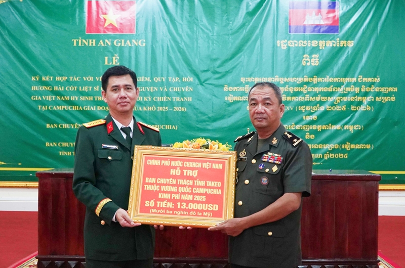 កប.អនឡាញ - នាថ្ងៃទី៩ តុលា នៅសាលប្រជុំធំរដ្ឋបាលខេត្តតាកែវ លោក Le Trung Ho អនុប្រធានគណៈកម្មាធិការប្រជាជនខេត្ត ប្រធានគណៈកម្មការជំនាញខេត្ត An Giang និងលោក ស៊ុត ខុន អភិបាលរង នៃគណៈអភិបាលខេត្តតាកែវ ប្រធានគណៈកម្មការជំនាញខេត្តតាកែវ បានអញ្ជើញចូលរួមជាគណៈអធិបតីភាពក្នុងពិធីចុះហត្ថលេខាកិច្ចសហប្រតិបត្តិការនៃការរុករក ជីកគាស់ និងការធ្វើមាតុភូមិនិវត្តន៍នូវអដ្ឋិធាតុកងទ័ពស្ម័គ្រចិត្ត និងជំនាញការវៀតណាម បានពលីជីវិតកាលពីសម័យសង្គ្រាមនៅកម្ពុជាសម្រាប់ដំណាក់កាល XXV (រដូវប្រាំង ២០២៥-២០២៦)។ ទន្ទឹមនឹងនោះ ប្រគល់ថវិកាពីរដ្ឋាភិបាលវៀតណាមជួយដល់គណៈកម្មការជំនាញខេត្តតាកែវ។