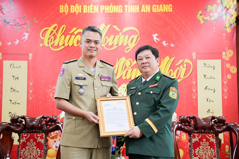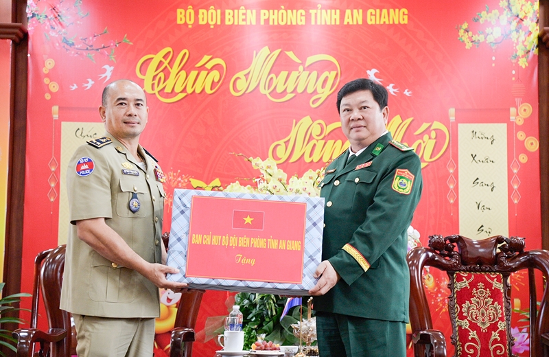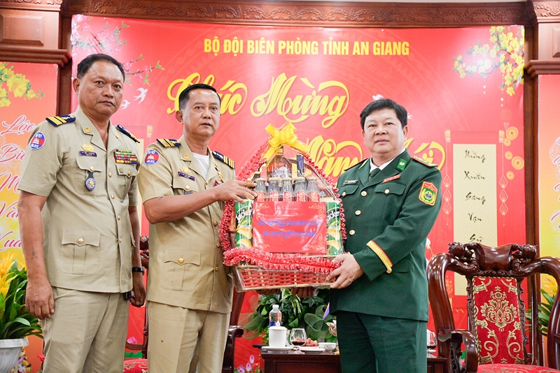 កងកម្លាំងការពារព្រំដែនទឹកនៃកម្ពុជាអញ្ជើញមកសួរសុខទុក្ខ និងជូនពរឆ្នាំថ្មីដល់កងទ័ពការពារព្រំដែនខេត្ត An Giang