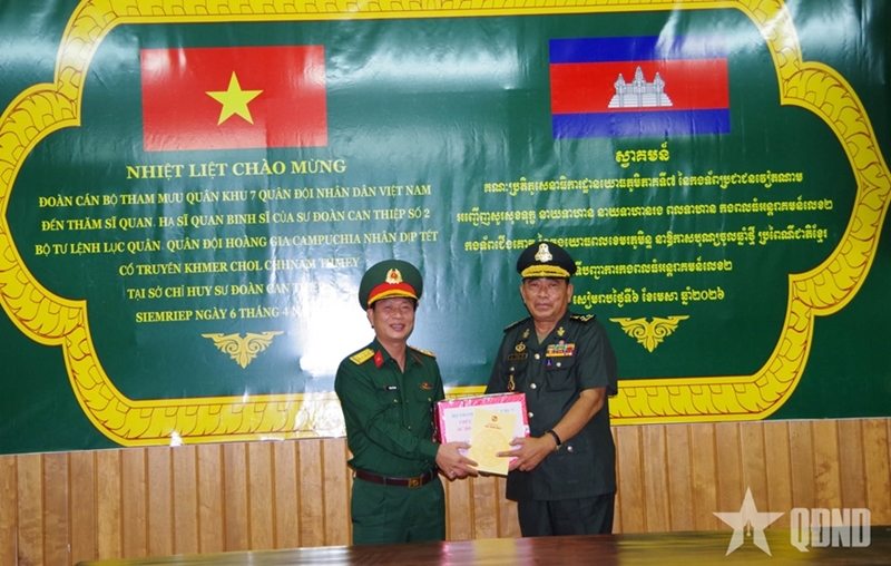 កប.អនឡាញ - នៅថ្ងៃទី៧ ខែមេសា គណៈប្រតិភូសេនាធិការដ្ឋាននៃយោធភូមិភាគទី៧ កងទ័ពប្រជាជនវៀតណាមបានអញ្ជើញទៅសួរសុខទុក្ខ និងជូនពរដល់កងពលធំអន្តរាគមន៍លេខ២ បញ្ជាការដ្ឋានកងទ័ពជើងគោក កងយោធពលខេមរភូមិន្ទក្នុងឱកាសបុណ្យចូលឆ្នាំថ្មីប្រពៃណីកម្ពុជា។