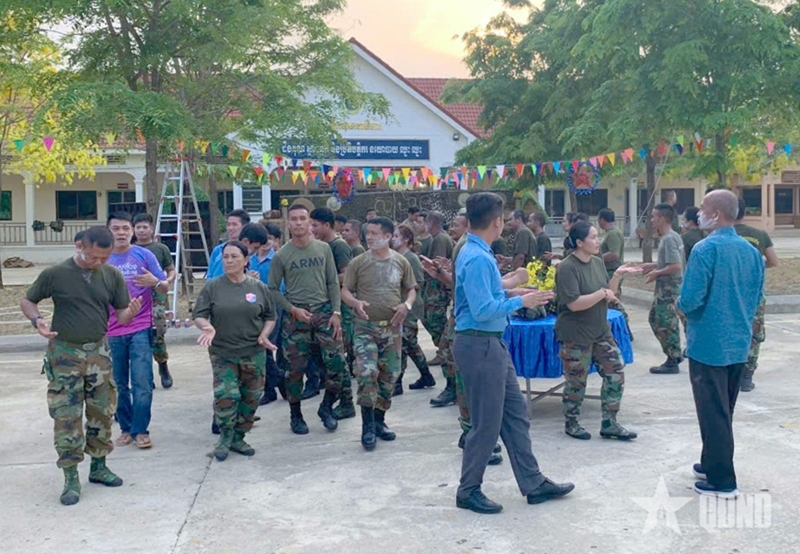 នៅកណ្តាលទីធ្លាបន្ទាយ សំឡេងភ្លេងបានបន្លឺឡើងពេញអាកាស។ កម្មាភិបាលនិងយុទ្ធជននៃប្រទេសទាំងពីរបានរួមគ្នារាំរបាំអប្សរាដ៏ស្រស់ស្អាត ។ កែវភ្នែក ស្នាមញញឹម និងមនោសញ្ចេតនារវាងយុទ្ធជនហាក់ដូចជាកាន់តែជិតស្និទ្ធ។