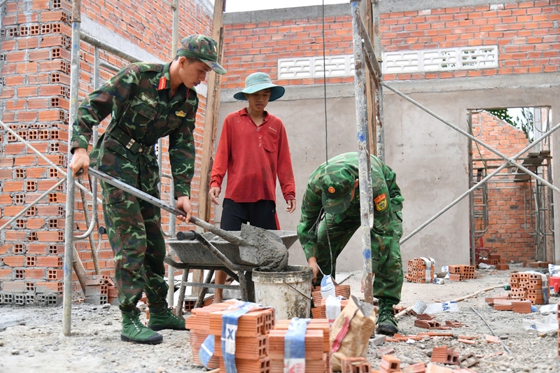 កម្មាភិបាលនិងយុទ្ធជននៃបញ្ជាការដ្ឋានយោធាខេត្ត An Giang ជួយគ្រួសារក្រីក្រសាងសង់ផ្ទះក្នុងឱកាសបុណ្យតេតកងទ័ព-ប្រជាជន |