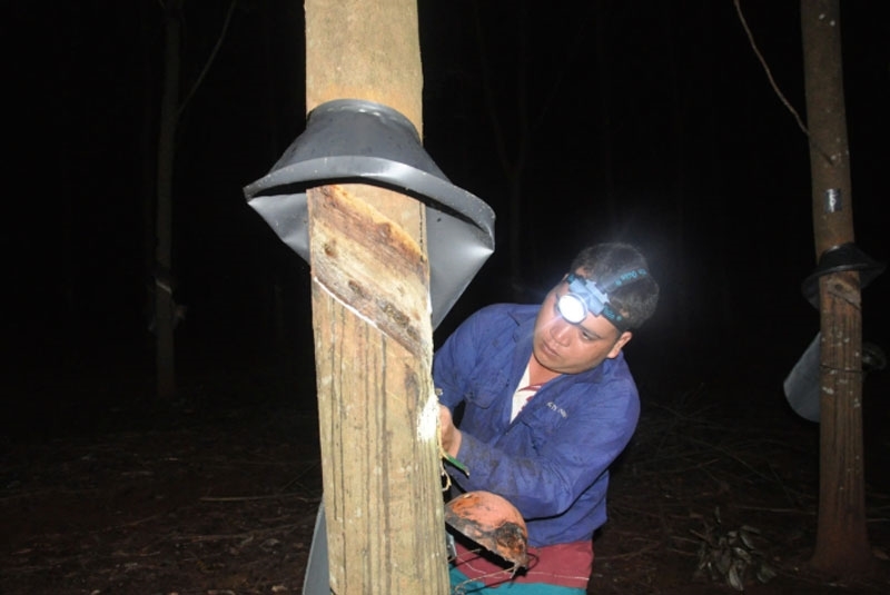 កម្មករនៃអង្គទ័ពលេខ ១៥ ច្រៀរជ័រកៅស៊ូ