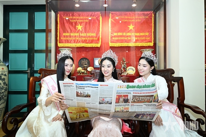 មកដល់កាសែតកងទ័ពប្រជាជន កញ្ញាស្រស់ស្អាតមិនត្រឹមតែពាំនាំសម្រស់ ភាពវៃឆ្លាត និងបំណងប្រាថ្នាចង់ចូលរួមចំណែកប៉ុណ្ណោះទេ ប៉ុន្តែថែមទាំងការគោរពយ៉ាងជ្រាលជ្រៅចំពោះសារព័ត៌មានបដិវត្តន៍ ការគោរពចំពោះកាសែតឈានមុខគេនៅក្នុងប្រព័ន្ធសារព័ត៌មានវៀតណាមផងដែរ។ បវកញ្ញាទាំងអស់បានសម្តែងការកោតសរសើរចំពោះប្រពៃណីរបស់កងទ័ពប្រជាជនវៀតណាម ព្រមទាំង ចង់បង្កើតទំនាក់ទំនជិតស្និទជាមួយកងទ័ពលោកអ៊ំហូ ដែលជាកងទ័ពប្រជាជន៕