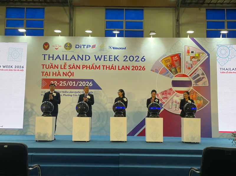 សប្តាហ៍ផលិតផលថៃឆ្នាំ ២០២៦ ដែលរៀបចំដោយនាយកដ្ឋានជំរុញពាណិជ្ជកម្មអន្តរជាតិ (DITP) នៃក្រសួងពាណិជ្ជកម្ម រដ្ឋាភិបាលថៃ ការិយាល័យពាណិជ្ជកម្មនៃស្ថានទូតថៃប្រចាំទីក្រុងហាណូយ និងក្រុមហ៊ុន Vinexad នឹងប្រព្រឹត្តទៅចាប់ពីថ្ងៃទី ២២ ដល់ថ្ងៃទី ២៥ ខែមករា ឆ្នាំ២០២៦។