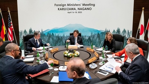កាលពីថ្ងៃទី១៨ ខែមេសា នៅទីក្រុង Nagano ប្រទេសជប៉ុន កិច្ចប្រជុំរដ្ឋមន្ត្រីការបរទេស G7 បានបិទបញ្ចប់ក្រោយរយៈពេល ៣ ថ្ងៃធ្វើការ (ថ្ងៃទី ១៦-១៨ ខែមេសា) ហើយបានចេញសេចក្តីថ្លែងការណ៍រួម ក្នុងនោះសង្កត់ធ្ងន់លើជម្លោះរុស្ស៊ី-អ៊ុយក្រែន ហើយប្រឆាំងជំទាស់នឹងទង្វើឯកតោភាគីផ្លាស់ប្ដូរស្ថានភាពដោយកម្លាំង។