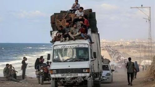 ប្រជាជនប៉ាឡេស្ទីនជម្លៀសខ្លួនដើម្បីជៀសវាងជម្លោះពីតំបន់ al-Nuseirat ភាគកណ្តាលតំបន់ហ្គាហ្សា (រូបថត៖ vnanet.vn) |