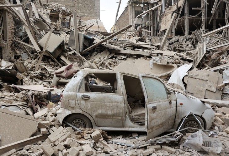ទិដ្ឋភាពនៃការវាយប្រហារលើអគារលំនៅដ្ឋានមួយ ក្នុងអំឡុងពេលជម្លោះរវាងសហរដ្ឋអាមេរិក និងអ៊ីស្រាអែលជាមួយអ៊ីរ៉ង់ នៅទីក្រុងតេអេរ៉ង់ ប្រទេសអ៊ីរ៉ង់ ថ្ងៃទី១៦ ខែមីនា ឆ្នាំ២០២៦ (រូបថត៖ Majid Asgaripour/WANA តាមរយៈ REUTERS) |