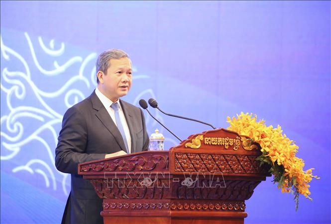 សម្តេចធិបតី ហ៊ុន ម៉ាណែត នាយករដ្ឋមន្ត្រីកម្ពុជា មានប្រសាសន៍ ក្នុងកិច្ចប្រជុំ (រូបថត៖ vnanet.vn) |