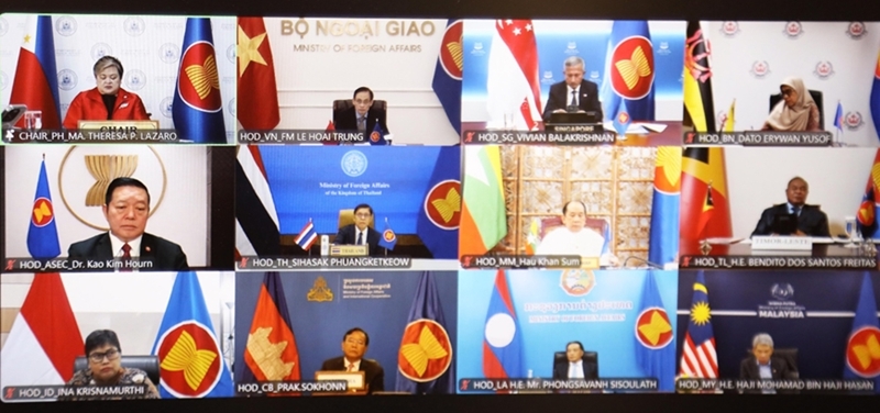 កប.អនឡាញ - នារសៀលថ្ងៃទី១៣ ខែមេសា រដ្ឋមន្ត្រីការបរទេសអាស៊ានបានបើកកិច្ចប្រជុំពិសេសលើកទីពីរតាមប្រព័ន្ធវីដេអូ ដើម្បីពិភាក្សា វាយតម្លៃ និងសម្របសម្រួលការឆ្លើយតបរបស់អាស៊ានចំពោះស្ថានភាពស្មុគស្មាញ និងការវិវត្ដន៍យ៉ាងឆាប់រហ័សនៅមជ្ឈិមបូព៌ា។ លោក Le Hoai Trung សមាជិកការិយាល័យនយោបាយ រដ្ឋមន្ត្រីក្រសួងការបរទេសវៀតណាម បានចូលរួមកិច្ចប្រជុំ។