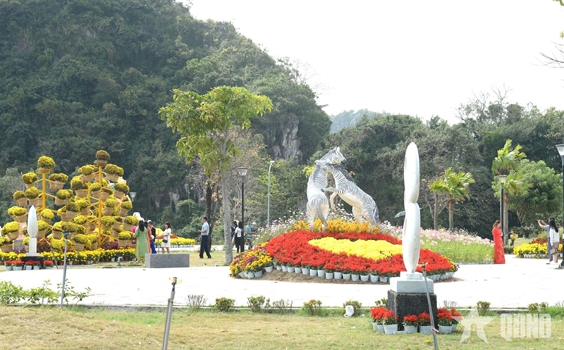 ប្រជាជន និងភ្ញៀវទេសចរទៅទស្សនា និងថតរូបនៅសួនផ្កា Xuan (សង្កាត់ Ngu Hanh Son ទីក្រុង Da Nang) |