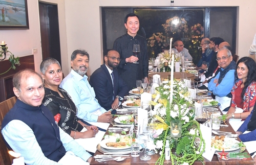 លោកឯកអគ្គរដ្ឋទូត Pham Sanh Chau (អ្នកឈរ) ណែនាំមុខម្ហូបវៀតណាមដល់មហាសេដ្ឋីឥណ្ឌា |
