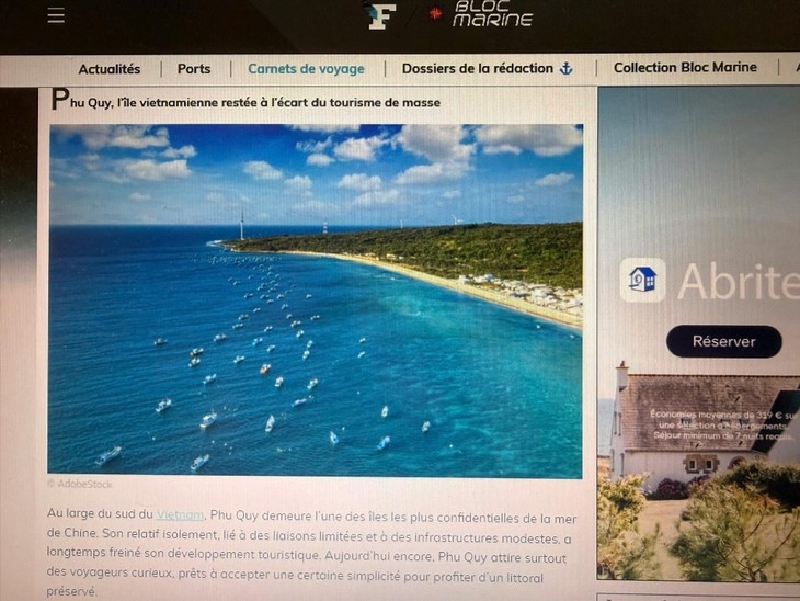 អត្ថបទណែនាំអំពីកោះ Phu Quy ដែលបានចុះផ្សាយនៅលើគេហទំព័រ igaronautisme.meteoconsult.fr (រូបថត៖ vnanet.vn) |