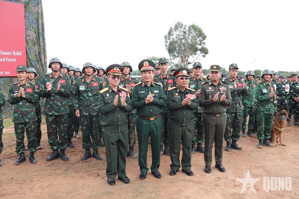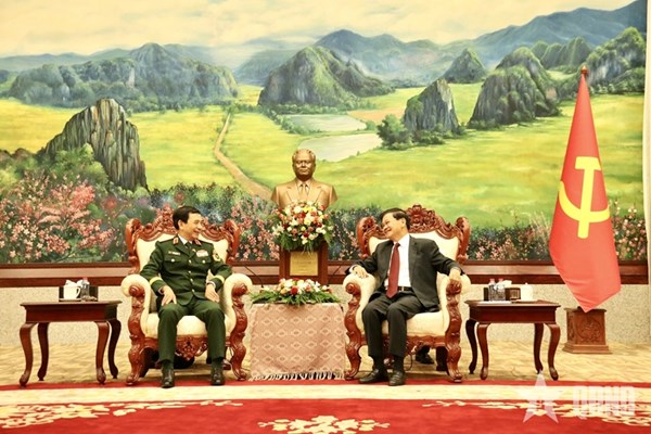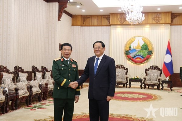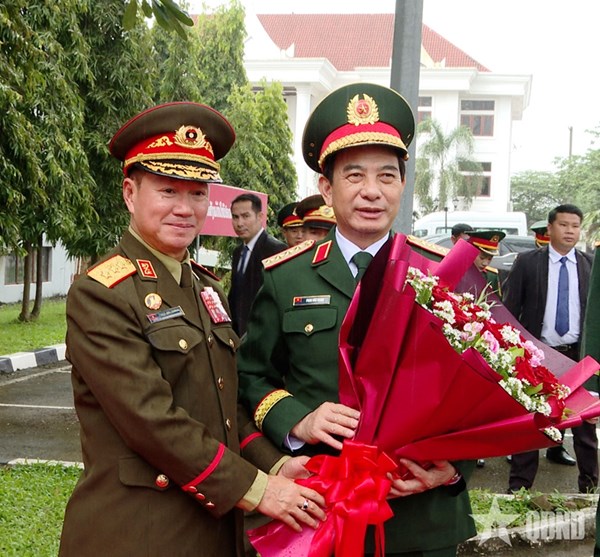 លោកនាយឧត្តមសេនីយ៍ Phan Van Giang លោកឧត្តមសេនីយ៍ឯក Khamliang Outhakaysone រដ្ឋមន្ត្រីក្រសួងការពារជាតិឡាវ (កណ្តាល) និងលោកនាយឧត្តមសេនីយ៍ ទៀ សីហា ឧបនាយករដ្ឋមន្ត្រី និងជារដ្ឋមន្ត្រីក្រសួងការពារជាតិកម្ពុជា ក្នុងពិធីចុះហត្ថលេខាលើអនុស្សរណៈនៃការយោគយល់គ្នាក្នុងកិច្ចប្រជុំប្រចាំឆ្នាំ