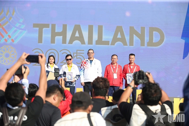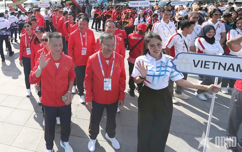 កប.អនឡាញ - ពិធីបង្ហូតទង់ជាតិរបស់គណៈប្រតិភូកីឡាវៀតណាម និងគណៈប្រតិភូកីឡាចូលរួមប្រកួតកីឡាស៊ីហ្គេមលើកទី ៣៣ បានធ្វើឡើងនៅពហុកីឡដ្ឋាន Hua Mark (ទីក្រុងបាងកក ប្រទេសថៃ) នារសៀលថ្ងៃទី៨ ខែធ្នូ។